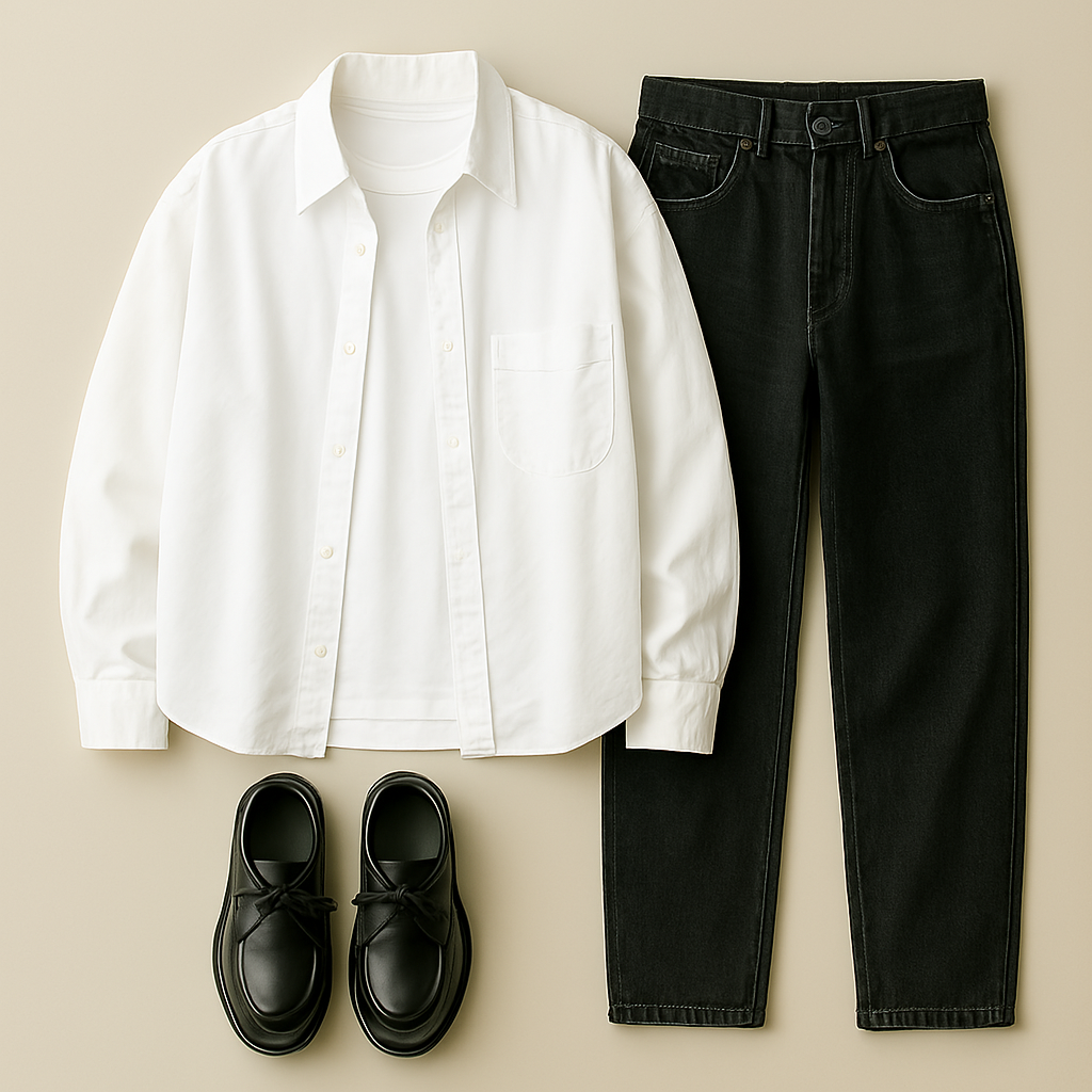ポイント: 例えば、シンプルなシャツ(きれいめ)にデニムパンツ(カジュアル)を合わせるなど、アイテム同士のバランスを考えましょう。