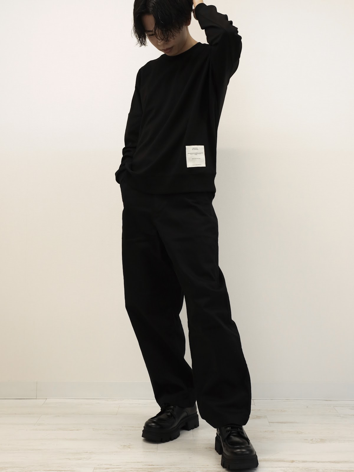 ①スウェット+チノパンツ着用