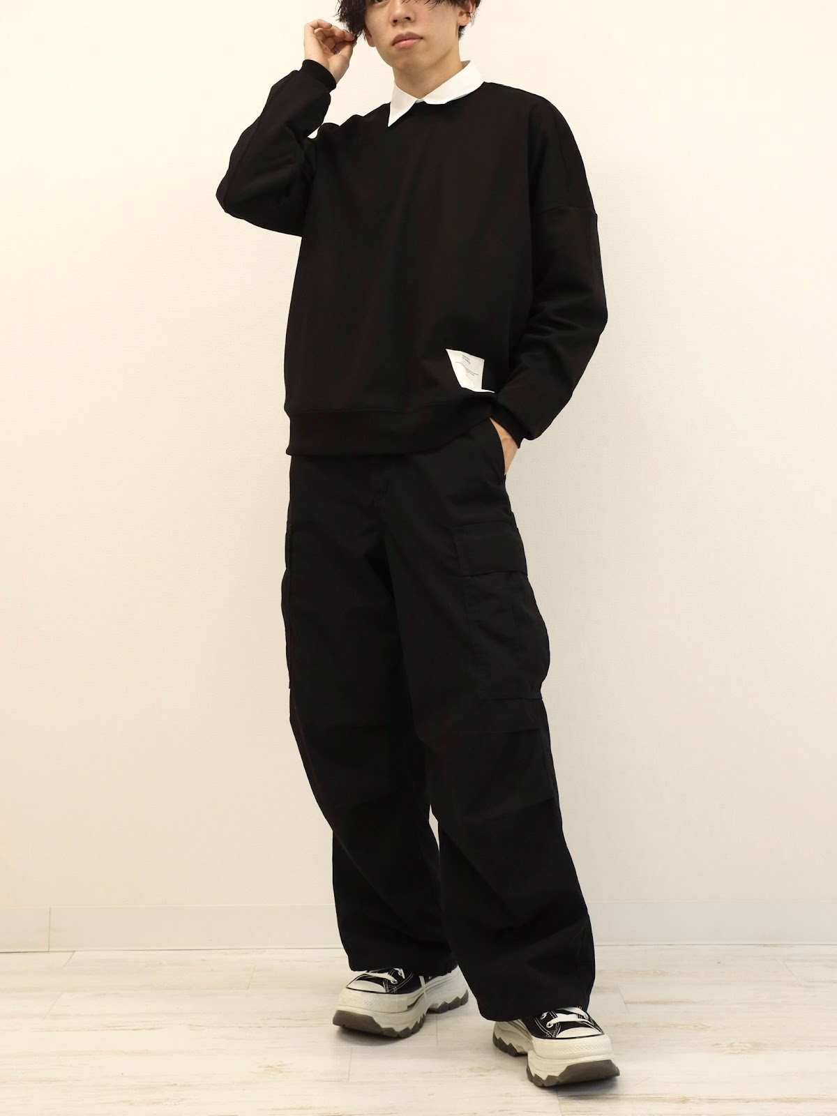 ①カーゴパンツ着用