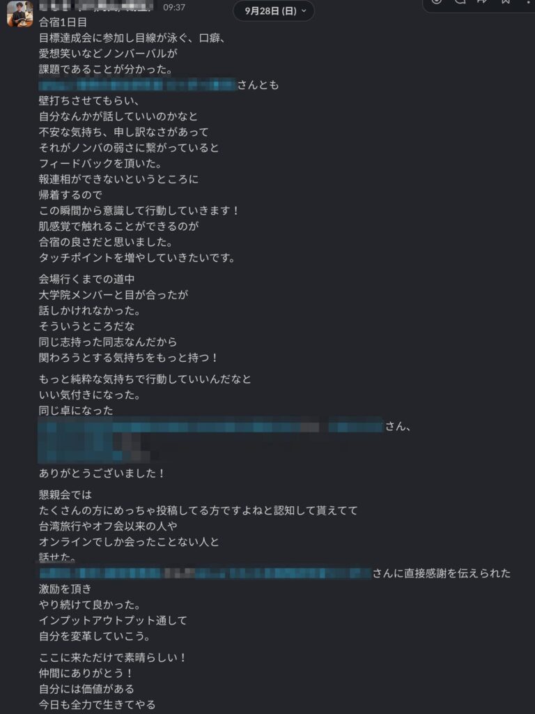 今回の合宿を通じて、改めて「仲間と学び合うこと」の力を感じました。