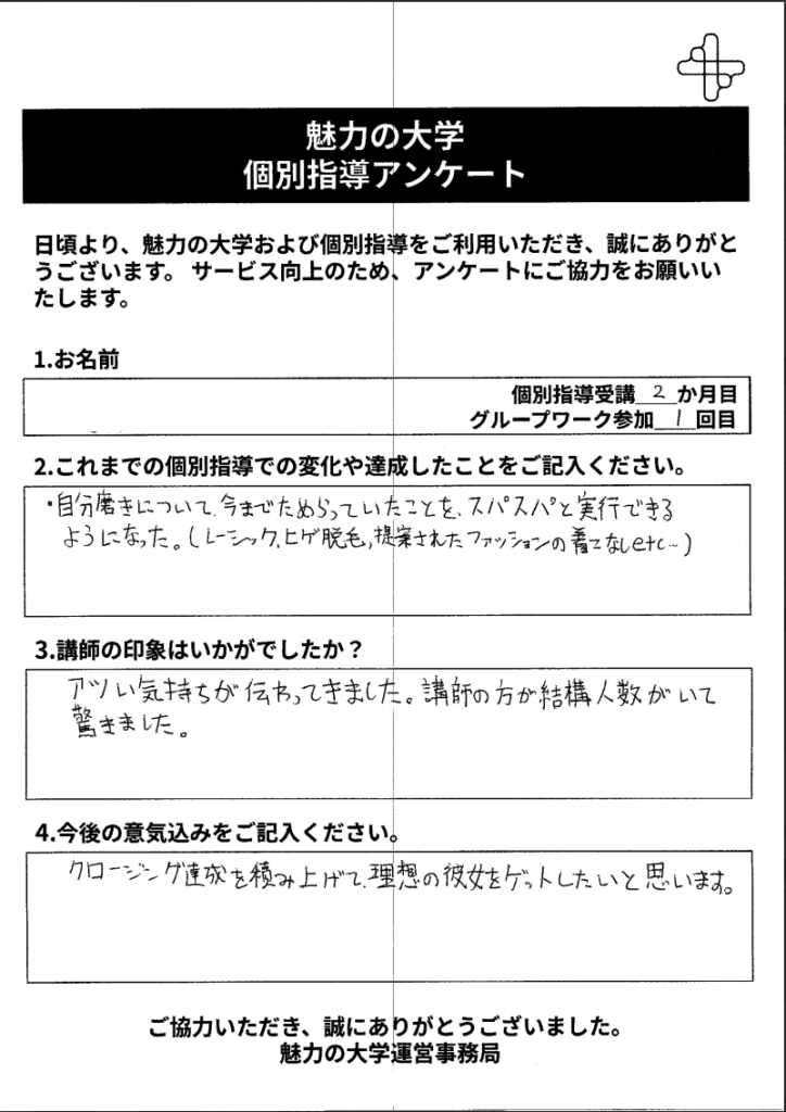 Hさん自分磨きに関して、今までためらっていたが、今では当たり前のように行動に移せるようになった。