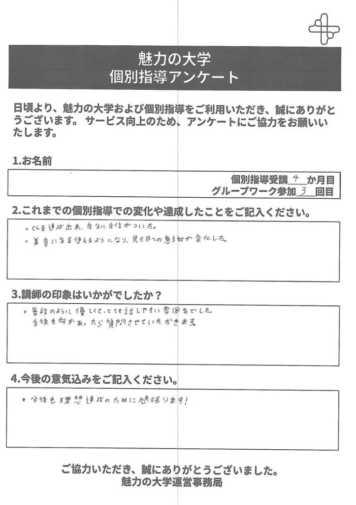講師を頼り、応援され、目標を達成させるために引き続き頑張っていきましょう!