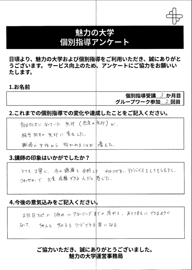 受講のきっかけは、「本気で好きになった人ができたこと」でした。