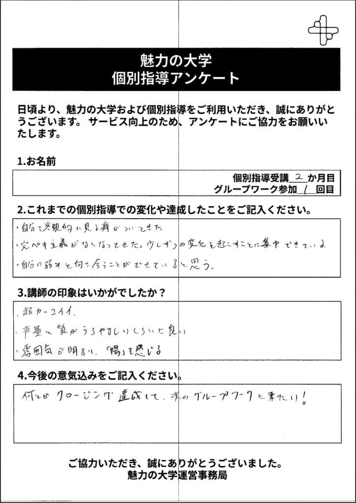 「担当講師とたくさんやり取りをして、精神面もサポートしてもらえたのが大きかったです。」