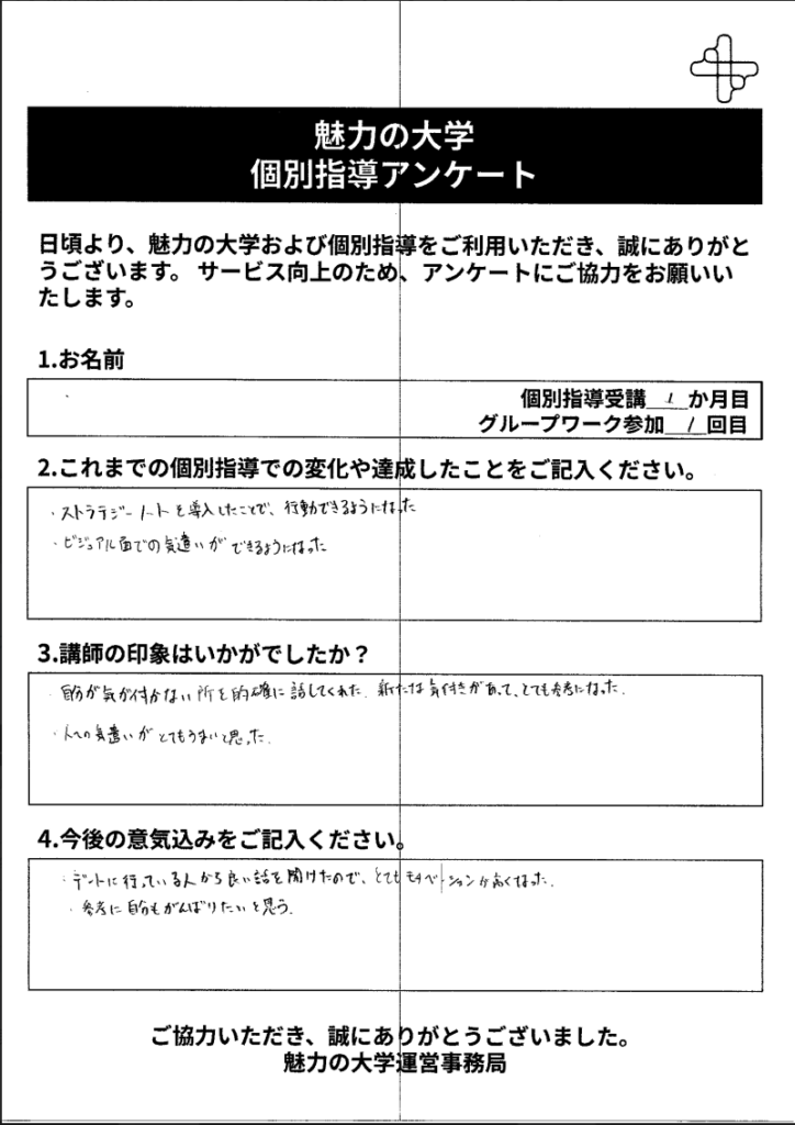 「魅力の大学」個別指導コース受講生のみが参加できるグループワークは、
