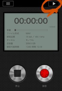 【ステップ1】PCM録音アプリを開き、右上の「▶︎」マークをタップ。