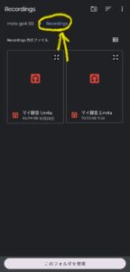 例:「簡単ボイスレコーダー」→「Recordings」フォルダに保存されます。
