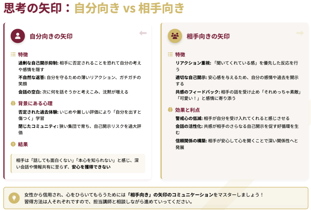 フェーズ2を突破するコミュニケーションにおいて重要なのが「思考の矢印」です。