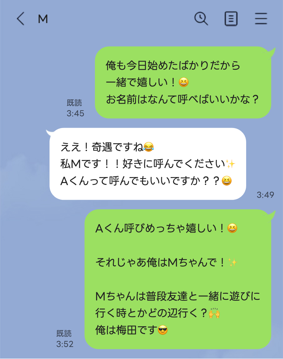 ♂はじめまして!〇〇っていいますよろしくお願いします!