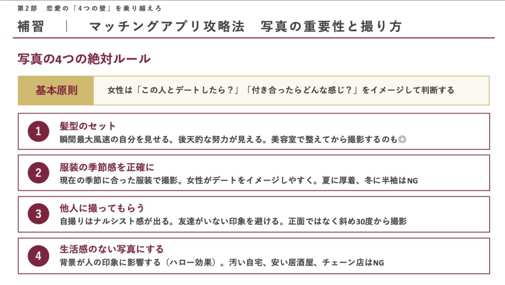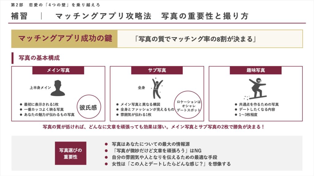 書籍『恋愛の大学』の内容をわかりやすくまとめた「図解スライド」と